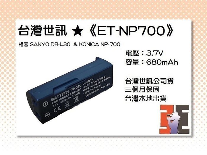 優寶購物《ubao.Tw》特貨品商城,黑貓宅配,取貨付款,【老闆的家當】台灣世訊ET-NP700 副廠電池(相容 SANYO DB-L30 電池) | Yahoo拍賣
