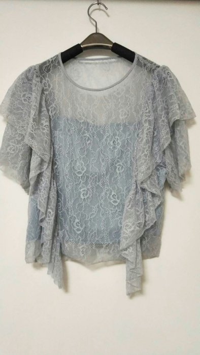 優寶購物《ubao.Tw》特貨品商城,黑貓宅配,取貨付款,EP縷空彈性蕾絲荷葉上衣 粉藍/粉紅 | Yahoo拍賣