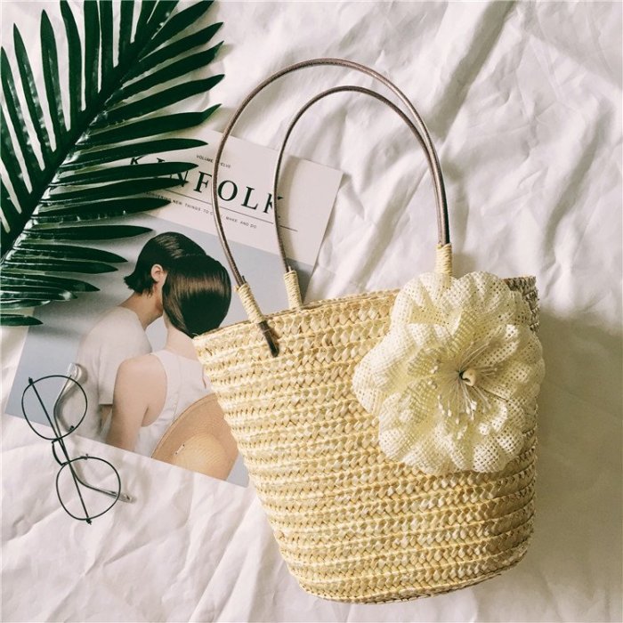 優寶購物《ubao.Tw》特貨品商城,黑貓宅配,取貨付款,日系度假風花朵草編包手拎包麥草麻花編織沙灘包女包束口包圓筒包水桶包 | Yahoo拍賣