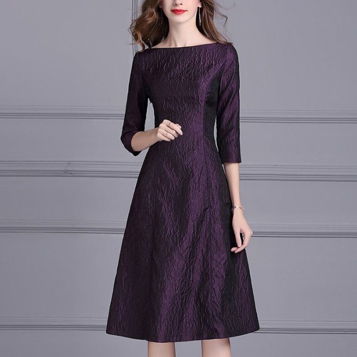 優寶購物《ubao.Tw》特貨品商城,黑貓宅配,取貨付款,艾琳婚紗禮服070725-3時尚提花連衣裙新款典雅氣質中袖修身A字裙禮服~ 3件免運 | Yahoo拍賣