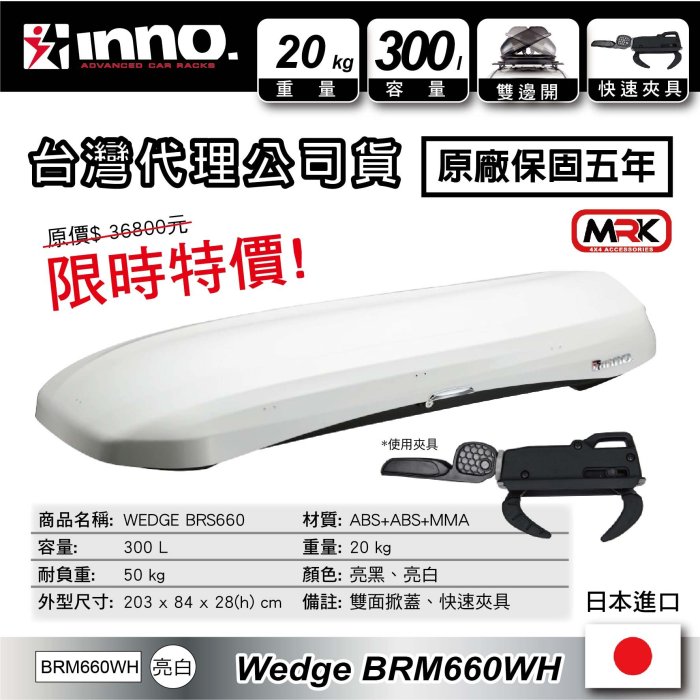 優寶購物《ubao.Tw》特貨品商城,黑貓宅配,取貨付款,【MRK】 限量優惠 INNO WEDGE BRM660 BRS660 亮白 車頂行李箱 車頂箱 660 | Yahoo拍賣
