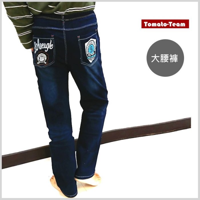 優寶購物《ubao.Tw》特貨品商城,黑貓宅配,取貨付款,《蕃茄丁》130~150m/中大童‧【8FC1253】腰加大版 ‧背後口袋盾形大圖 ‧ 刷洗色厚款牛仔褲 | Yahoo拍賣