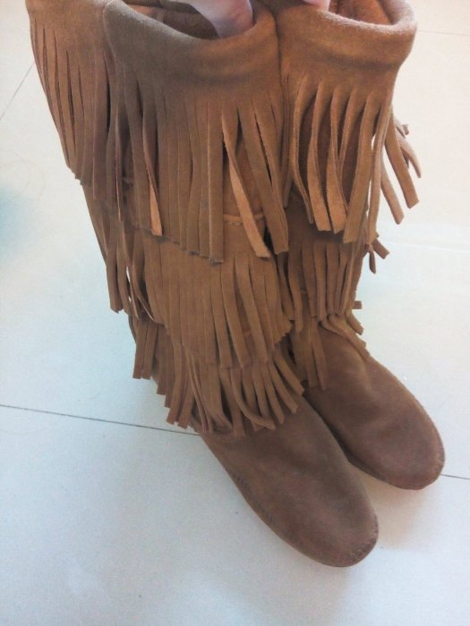 優寶購物《ubao.Tw》特貨品商城,黑貓宅配,取貨付款,歐美好萊塢 Minnetonka莫卡辛 三層流蘇麂皮長靴 駝色 咖啡色 孫芸芸 | Yahoo拍賣