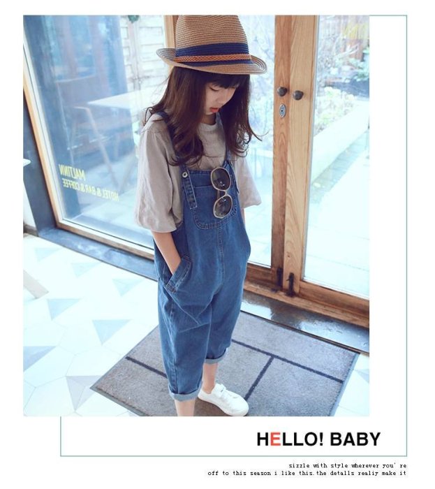 優寶購物《ubao.Tw》特貨品商城,黑貓宅配,取貨付款,✨2018新款中大童休閒哈倫牛仔吊帶7分褲? | Yahoo拍賣