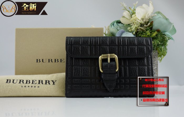 優寶購物《ubao.Tw》特貨品商城,黑貓宅配,取貨付款,優買二手精品名牌店 Burberry LONDON 黑色 荔枝皮 格紋 零錢 中夾 皮夾 錢包 全新 | Yahoo拍賣