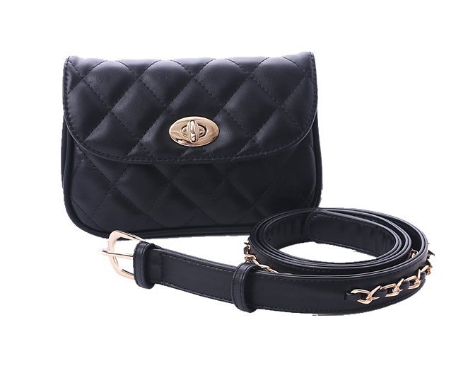 優寶購物《ubao.Tw》特貨品商城,黑貓宅配,取貨付款,♥PK漂亮♥ K17029 黑色菱格紋小香金屬鍊條腰包出國證件護照皮帶單肩斜揹包手機包 | Yahoo拍賣