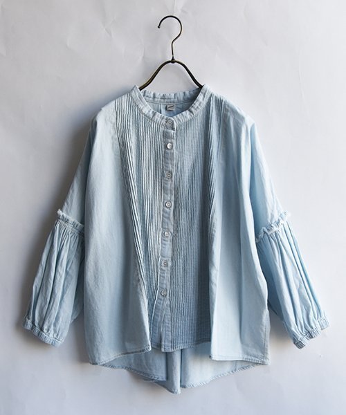 優寶購物《ubao.Tw》特貨品商城,黑貓宅配,取貨付款,|The Dood Life|日本高級森牌 BASCO Haddow / 氣質風琴細褶 立領氣球袖 牛仔單寧襯衫 TUTIE. | Yahoo拍賣