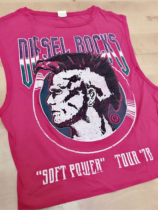 優寶購物《ubao.Tw》特貨品商城,黑貓宅配,取貨付款,衣櫃清倉-近全新義大利潮牌DIESEL桃紅色粉紅印地安數位印刷圖案純棉寬版寬鬆無袖設計圖T恤長版背心 | Yahoo拍賣