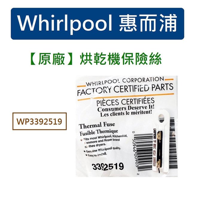 優寶購物《ubao.Tw》特貨品商城,黑貓宅配,取貨付款,【原廠】Whirlpool WP3392519 3392519 惠而浦乾衣機保險絲 烘乾機 烘衣機 出風口溫度保險絲 | Yahoo拍賣