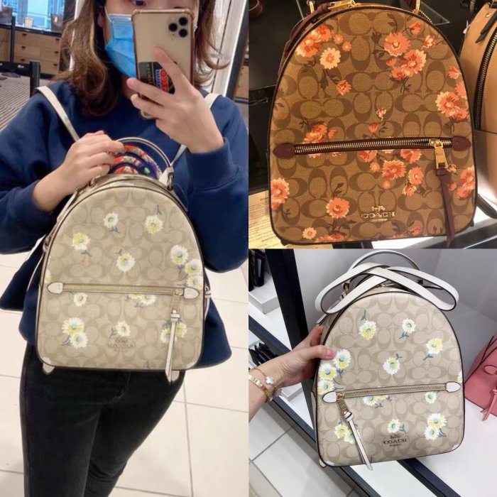 優寶購物《ubao.Tw》特貨品商城,黑貓宅配,取貨付款,NaNa代購 Coach 2856 3054 新款花朵圖案印花女士後背包 防水防刮 前置拉鏈隔層 雙肩背包 附購證 | Yahoo拍賣