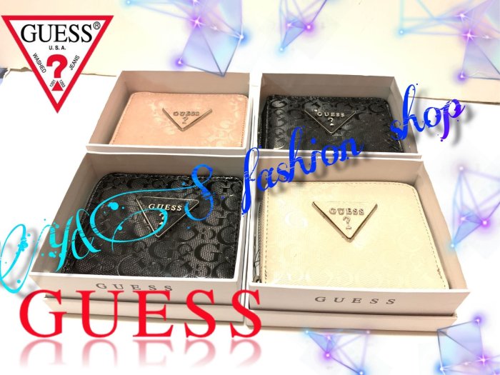 優寶購物《ubao.Tw》特貨品商城,黑貓宅配,取貨付款,??Guess經典亮面紋路黑色/奶茶/粉色短夾 限量優惠 現貨 | Yahoo拍賣