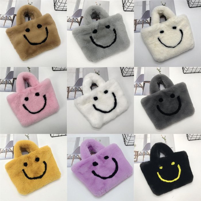 優寶購物《ubao.Tw》特貨品商城,黑貓宅配,取貨付款,日韓時尚可愛笑臉毛毛手提包(贈送肩帶) | Yahoo拍賣