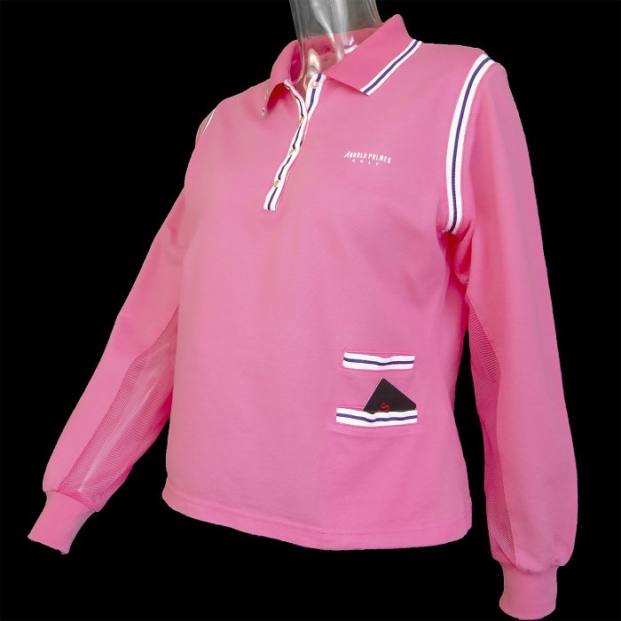 優寶購物《ubao.Tw》特貨品商城,黑貓宅配,取貨付款,美國Arnold Palmer雨傘牌粉色網紗拼接長袖 POLO衫 | Yahoo拍賣