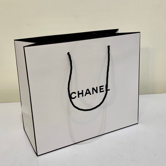 優寶購物《ubao.Tw》特貨品商城,黑貓宅配,取貨付款,CHANEL 香奈兒 新款黑邊白色LOGO紙袋/提袋/禮品包裝袋 (大) | Yahoo拍賣