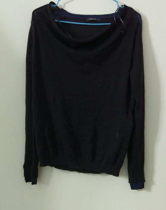 優寶購物《ubao.Tw》特貨品商城,黑貓宅配,取貨付款,(搬家大出清)法國品牌 KOOKAI 美麗諾羊毛,黑色(有紫藍色在肩、領、袖處)薄料的針織衫/薄毛衣。寬領有彈性。 尺寸 法國 2碼 agnesb jil | Yahoo拍賣