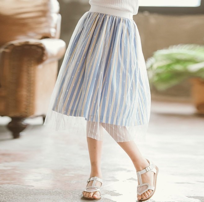 優寶購物《ubao.Tw》特貨品商城,黑貓宅配,取貨付款,小圖藤童裝~~~中大童~~2020夏季新款女童半身裙蕾絲裙條纹休閒拼接過膝長裙(A750)~~現貨150*2 | Yahoo拍賣