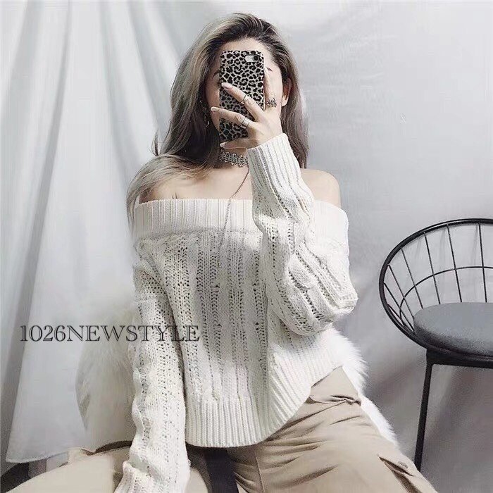 優寶購物《ubao.Tw》特貨品商城,黑貓宅配,取貨付款,++1026++歐美性感露肩 毛料粗針織衫 保暖加厚寬領長袖寬鬆毛絨毛線衫 短版高腰露腰 斜肩一字領 米色麻花小毛衣 | Yahoo拍賣