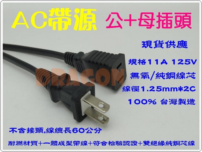 優寶購物《ubao.Tw》特貨品商城,黑貓宅配,取貨付款,AC電源線 11A 125V Rohs認證線 台灣製造 公+母插頭 純銅線徑1.25mm*2C 監控工程 帶線插頭 | Yahoo拍賣