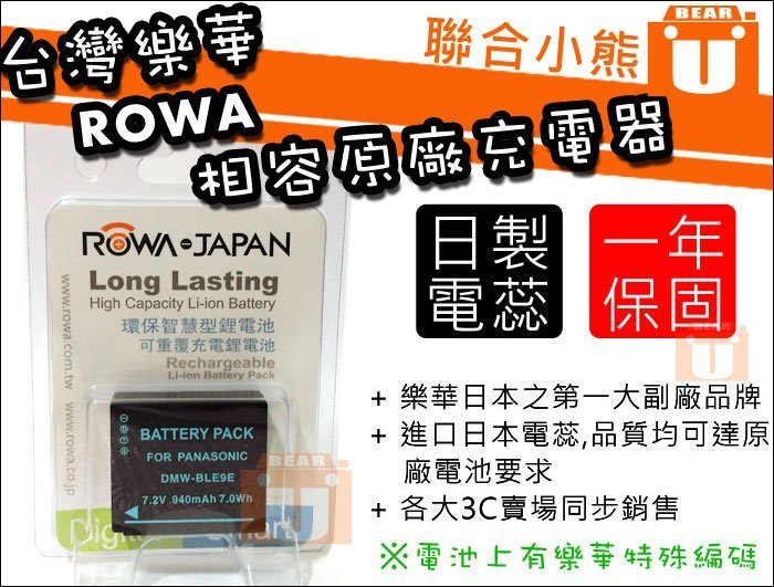 優寶購物《ubao.Tw》特貨品商城,黑貓宅配,取貨付款,【聯合小熊】現貨 ROWA 樂華 for DMW-BLE9 DMW-BLG10 BLE9GK BLG10 電池 | Yahoo拍賣
