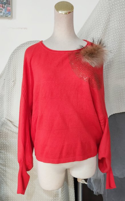 優寶購物《ubao.Tw》特貨品商城,黑貓宅配,取貨付款,∮紫o°免稅店°o╭*○ 橘紅狐狸毛造型貼鑽連袖針織棉上衣 ○ | Yahoo拍賣