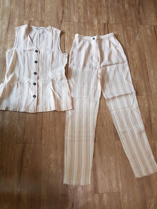 優寶購物《ubao.Tw》特貨品商城,黑貓宅配,取貨付款,義大利品牌 淺卡其直條紋 長背心+長褲 醋酸纖維面料 涼爽舒適 | Yahoo拍賣