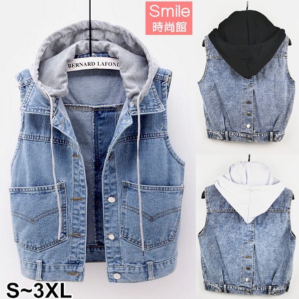 優寶購物《ubao.Tw》特貨品商城,黑貓宅配,取貨付款,【V3092】SMILE-簡搭風格.百搭連帽無袖馬甲牛仔背心外套 | Yahoo拍賣