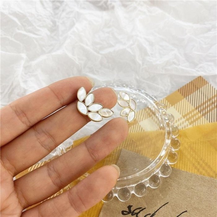 優寶購物《ubao.Tw》特貨品商城,黑貓宅配,取貨付款,[韓國預購款]氣質貝殼樹葉耳環(925銀針) | Yahoo拍賣
