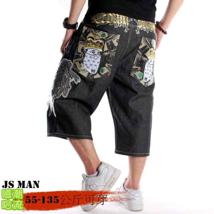 優寶購物《ubao.Tw》特貨品商城,黑貓宅配,取貨付款,歐美 HIPHOP街舞 精工刺繡植絨印花滑板褲 原色七分牛仔褲30-46腰#090【JS MAN型男加大尺碼男裝】】 | Yahoo拍賣