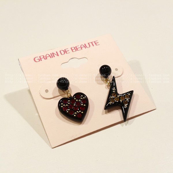 優寶購物《ubao.Tw》特貨品商城,黑貓宅配,取貨付款,Navy 布藝手作 ☆ 韓國 品牌 Grain de Beaute 個性閃電愛心晶鑽不對稱耳環 | Yahoo拍賣