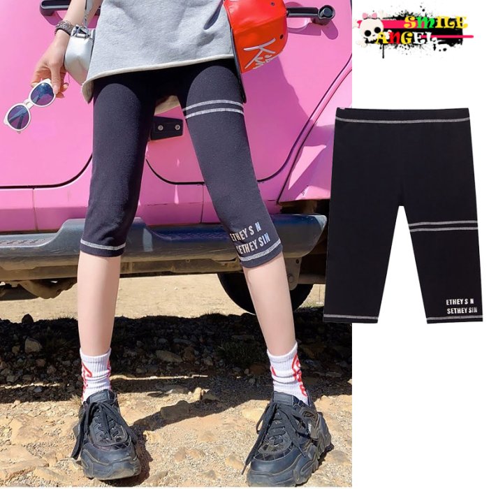 優寶購物《ubao.Tw》特貨品商城,黑貓宅配,取貨付款,Smile 夏季百搭舒適單側金屬質感燙字字母兩槓印花薄棉五分褲 休閒褲 內搭褲 S~XL號 QH72611 | Yahoo拍賣