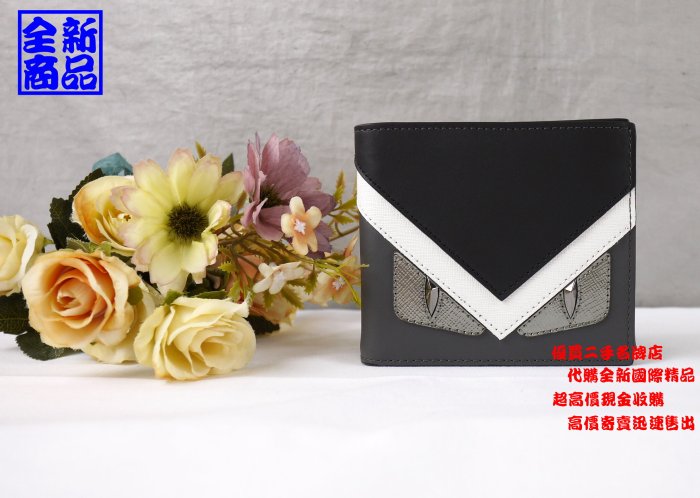 優寶購物《ubao.Tw》特貨品商城,黑貓宅配,取貨付款,優買二手精品名牌店 FENDI 7M0169 黑 灰 全皮 MONSTER 怪獸 銀眼 短夾 發財夾 皮夾 男夾 全新 | Yahoo拍賣