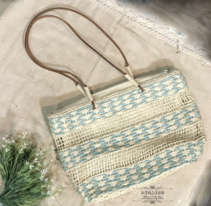 優寶購物《ubao.Tw》特貨品商城,黑貓宅配,取貨付款,~*歐室精品傢飾館* ~海洋風 單肩 簡約 簍空 度假 ins風 海邊 沙灘 度假 編織 草編包 藍白 ~新款上市~ | Yahoo拍賣