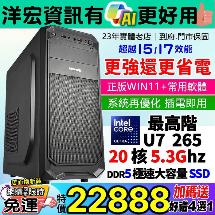 優寶購物《ubao.Tw》特貨品商城,黑貓宅配,取貨付款,【22888元】最新超越原I7高階INTEL U7-265 5.3G高速主機8G/500G/WIN11安卓雙系統更省電還有AI到府收送保固 | Yahoo拍賣