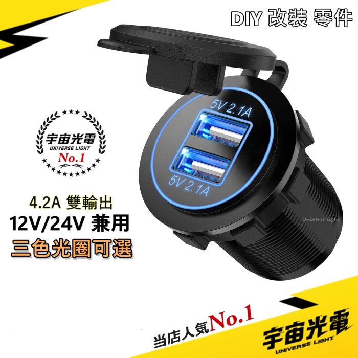優寶購物《ubao.Tw》特貨品商城,黑貓宅配,取貨付款,改裝 零件 光圈版 LED 極速 4.2A USB 充電器 車充 機車 雙孔車充 防水 手機充電 充電座 | Yahoo拍賣