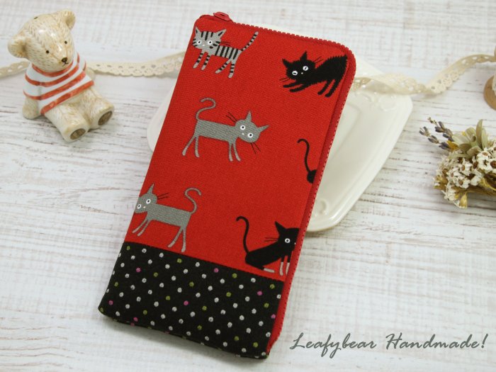 優寶購物《ubao.Tw》特貨品商城,黑貓宅配,取貨付款,✿葉手作✿ 貓咪大集合(紅)L型拉鍊手機袋-iphone/Sony/ 三星/asus/HTC/LG【可客製各廠牌型號】 | Yahoo拍賣