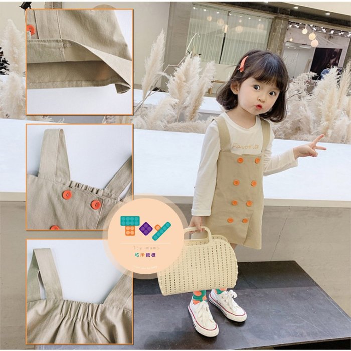優寶購物《ubao.Tw》特貨品商城,黑貓宅配,取貨付款,Toy mama – 現貨吊帶學院風連身裙 9個月~6歲 女童韓版雙排扣吊帶裙 優雅蝴蝶結衣裙 簡約奶茶色 背殺小網美 女寶 | Yahoo拍賣