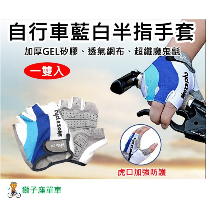 優寶購物《ubao.Tw》特貨品商城,黑貓宅配,取貨付款,CYCLE ZONE 藍白手套 自行車手套 腳踏車手套 加厚護墊 GEL矽膠減震 人體工學 透氣 半指 (PEARL | Yahoo拍賣