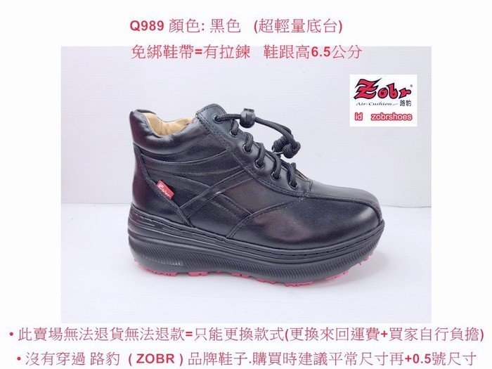 優寶購物《ubao.Tw》特貨品商城,黑貓宅配,取貨付款,路豹最新超輕量鞋底台 Zobr 路豹 牛皮厚底氣墊休閒鞋NO: Q989 顏色: 黑色(超輕量底台) 免綁鞋帶=有拉鍊 | Yahoo拍賣