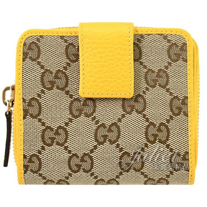 優寶購物《ubao.Tw》特貨品商城,黑貓宅配,取貨付款,【茱麗葉精品】《全新精品》GUCCI 專櫃商品 346056 經典雙G緹花布皮飾邊扣式短夾.駝/黃邊 預購無現貨 | Yahoo拍賣