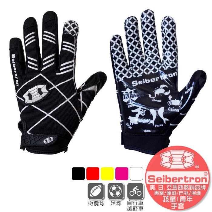 優寶購物《ubao.Tw》特貨品商城,黑貓宅配,取貨付款,手選 Seibertron 孩童青年-黑色 橄欖球 美式足球 外接手套 | 足球手套 防護手套 前鋒手套 防滑 耐磨 | Yahoo拍賣