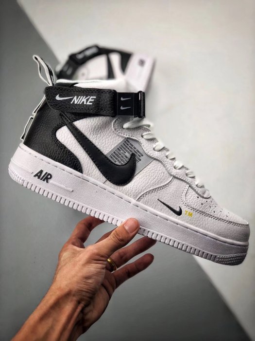 優寶購物《ubao.Tw》特貨品商城,黑貓宅配,取貨付款,Nike Air Force 1 Mid AF1 黑白 字母 小勾 皮革 簡約 低幫 滑板鞋804609-103情侶鞋 | Yahoo拍賣