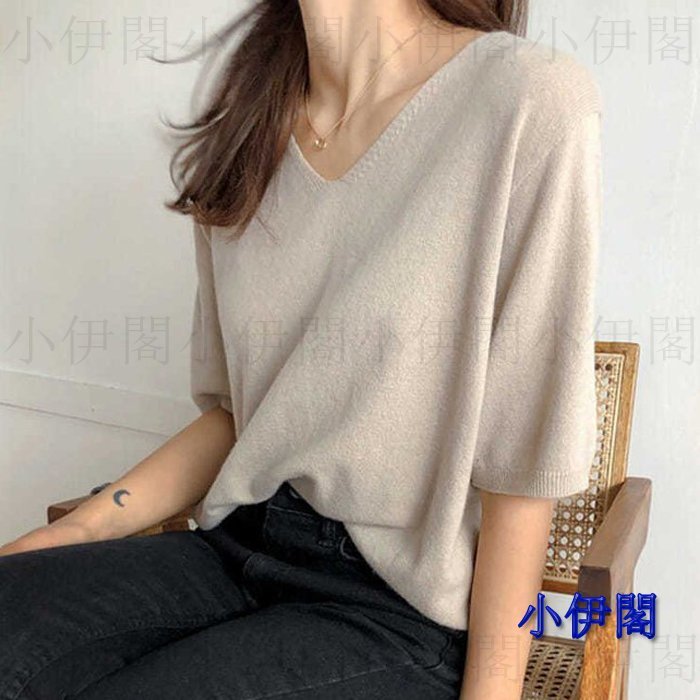 優寶購物《ubao.Tw》特貨品商城,黑貓宅配,取貨付款,小伊閣 =超火cec短袖女T恤新款寬松森女慵懶風垂感超仙冰絲針織衫上衣=上衣*短t*打底衫*一字領t*雪紡*襯衫*蕾絲 | Yahoo拍賣