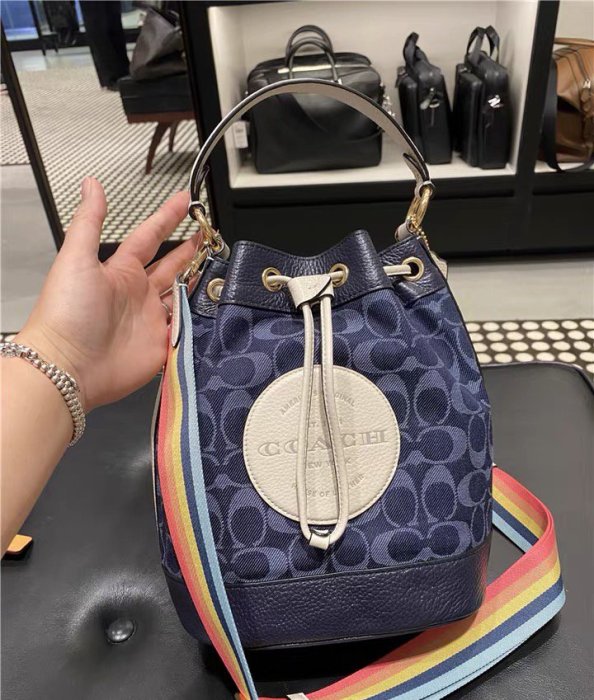 優寶購物《ubao.Tw》特貨品商城,黑貓宅配,取貨付款,留學生like購 COACH C4101 新款女士Dempsey水桶包 手提包 彩虹肩帶單肩斜揹包 附購證 | Yahoo拍賣