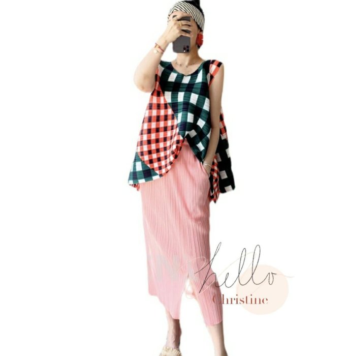 優寶購物《ubao.Tw》特貨品商城,黑貓宅配,取貨付款,【褶皺背心格紋上衣】優月精品◇三宅折衣摺衣☆褶衣☆❤️1:1官網新品。同款特製款歐洲進口高端布料超低回饋。不退換....情人節禮物💕 | Yahoo拍賣