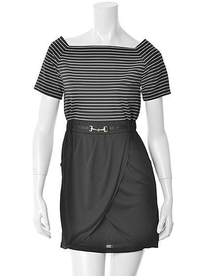 優寶購物《ubao.Tw》特貨品商城,黑貓宅配,取貨付款,日本品牌CECIL McBEE條紋拼接異材質腰間金屬扣環設計質感洋裝 | Yahoo拍賣