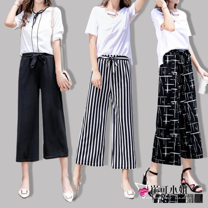 優寶購物《ubao.Tw》特貨品商城,黑貓宅配,取貨付款,【崔可小姐】時尚 多款 條紋圓點 繫帶 蝴蝶結 七分 八分 寬褲【EH0005】 | Yahoo拍賣