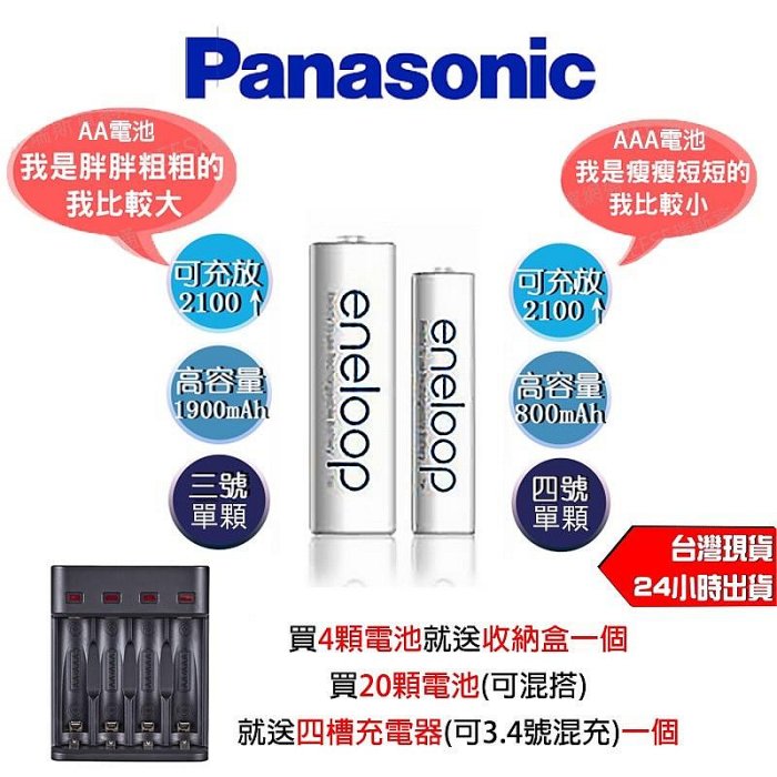 優寶購物《ubao.Tw》特貨品商城,黑貓宅配,取貨付款,Panasonic 國際牌 eneloop 2100次 日本 4號AAA 3號AA 1.2V 低自放 充電電池 單顆販賣 | Yahoo拍賣