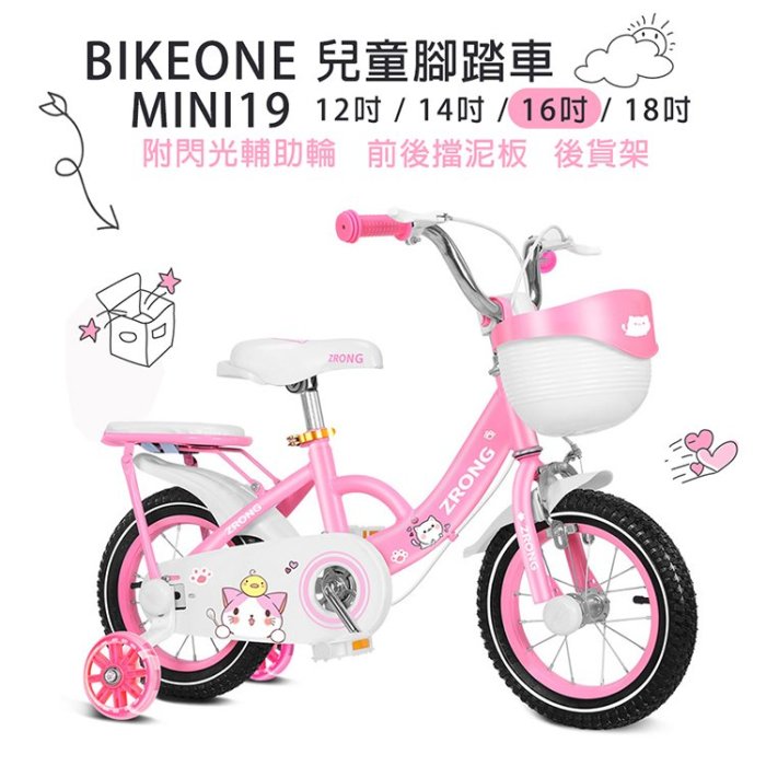 優寶購物《ubao.Tw》特貨品商城,黑貓宅配,取貨付款,BIKEONE MINI19 可愛貓16吋兒童腳踏車附閃光輔助輪打氣輪前後擋泥板與後貨架兒童自行 | Yahoo拍賣