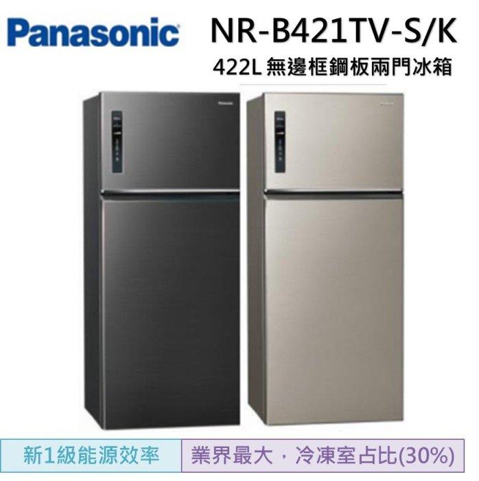 優寶購物《ubao.Tw》特貨品商城,黑貓宅配,取貨付款,【可議價】Panasonic國際牌 ECONAVI 422公升雙門冰箱NR-B421TV-S / B421TV-K | Yahoo拍賣