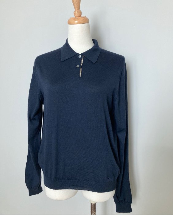 優寶購物《ubao.Tw》特貨品商城,黑貓宅配,取貨付款,正品BURBERRY深藍色頂級處女羊毛長袖polo衫 | Yahoo拍賣